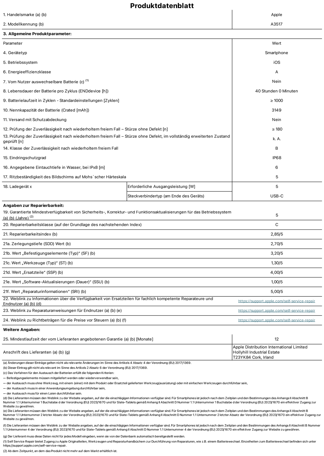 Auf ein (1) Jahr beschränkte Apple-Garantie |